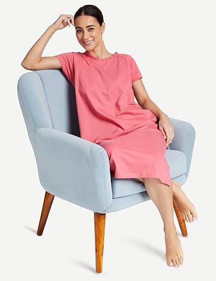 Cotton Calf Length Regular Fit Nighty | Night Dress | Available in Plus Size