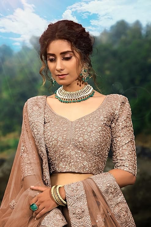 Divine Exim Women’s Net Semi Stitched Lehenga Choli with Dupatta | Dori and Sequin Embroidery Pattern | Traditional, Wedding, Ethnic Wear Lehenga
