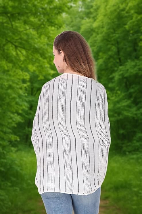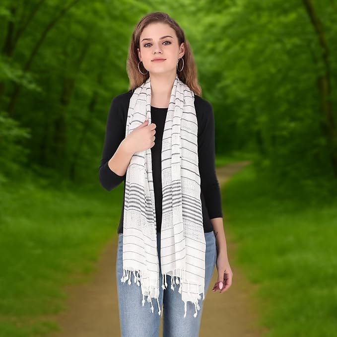 FWC Fill With Colours Stole/Scarf For Female Colour- White Soft Viscose Cotton Blend Ethnic Stripes Pattern Scarves Pack Of 1 ST-15