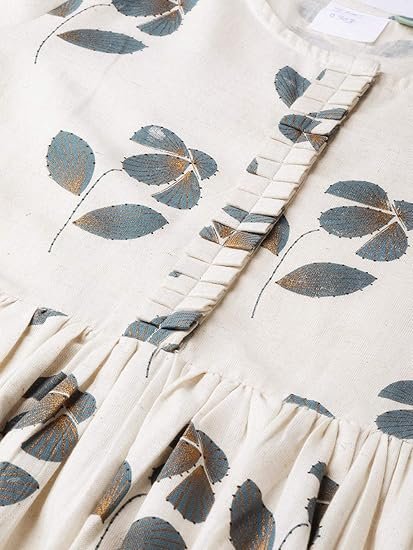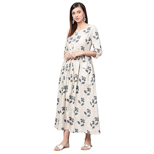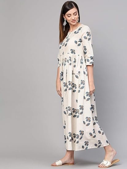 Elegant Ethnic Wear – This Cream and Grey Floral Printed Cotton A-Line Dress with Pockets is a good addition to your ethnic wear wardrobe, blending style and comfort for a modern dress that’s great for formal occasions