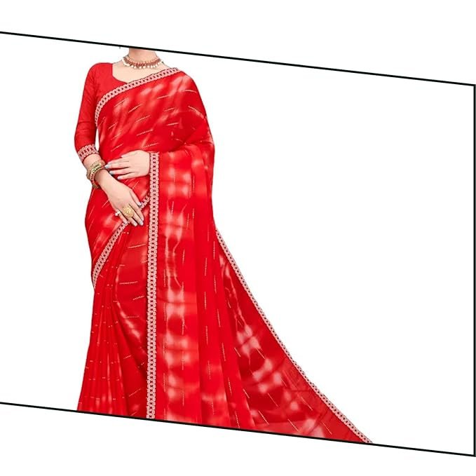 Laxmi Sarees Women’s Tie-Dye Chiffon Saree In Red Color With Unstitched Blouse – Suitable For All Indian Occasions and Festivals