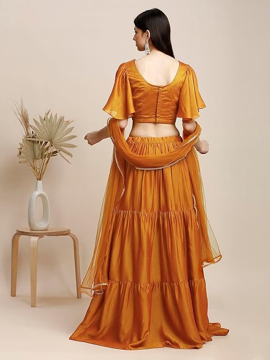 - VERSATILE DRESS FOR ALL OCCASIONS: You can pair the Orange Color 3 Piece Set Lehenga,Choli With Dupatta Set Choli And Lehenga Vichitra Silk Set by Madhuram Textiles with the orange brighter a stylish look. Excellent for everyday wear, office wear, ethnic occasions, Marriage parties, and birthday sets for women And Girls.