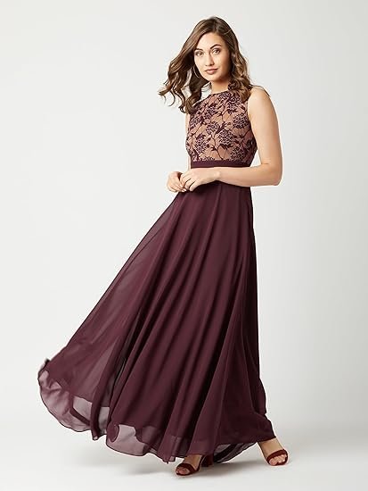 - Style: Fit & Flare | Pattern: Floral | Fit: Relaxed Fit | Neck: Round Neck | Length: Maxi .