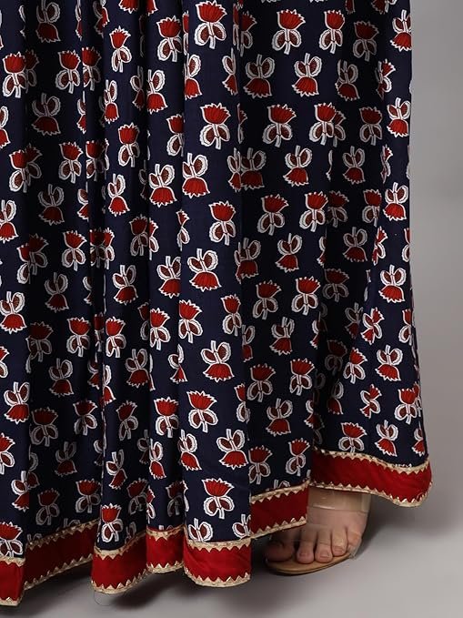 NYPA Women Ethnic Wear Gota Lacs Work Gota Lacs Work Printed Flared Full Length Long Skirt
