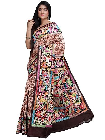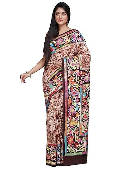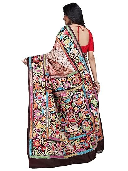 Ruprekha Fashion Women’s Off-White Colour Pure Murshidabad Silk Hand Embroidered Kantha Stitch On Batik Printed Saree