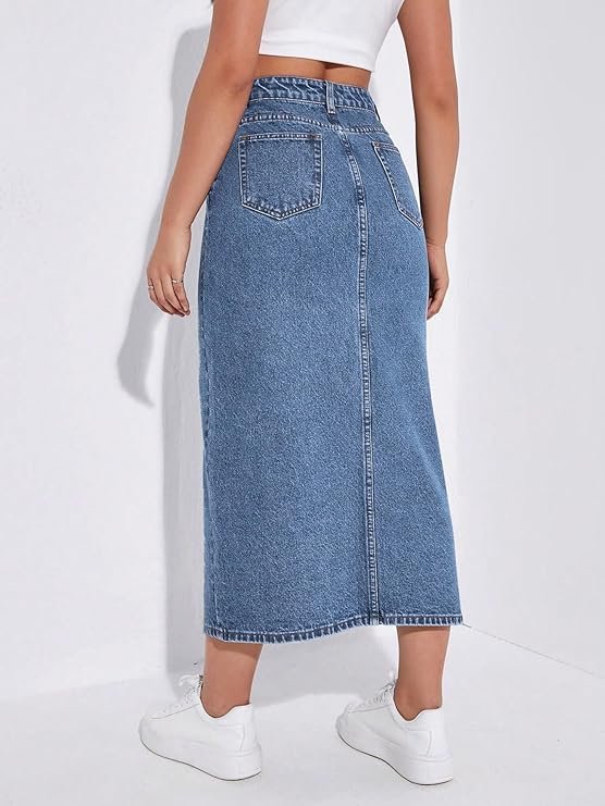 Shasmi Women’s Spring/Summer Casual Front Split Thigh Straight Denim Skirt ll Denim Skirt for Women Long ll Skirt & top for Women ll Skirts for Women Long Length (Skirt 159)