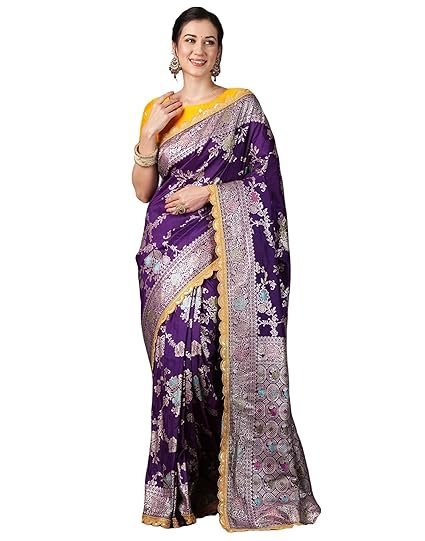 - Colour:: Saree Color: Purple | Blouse Color: Yellow, Golden