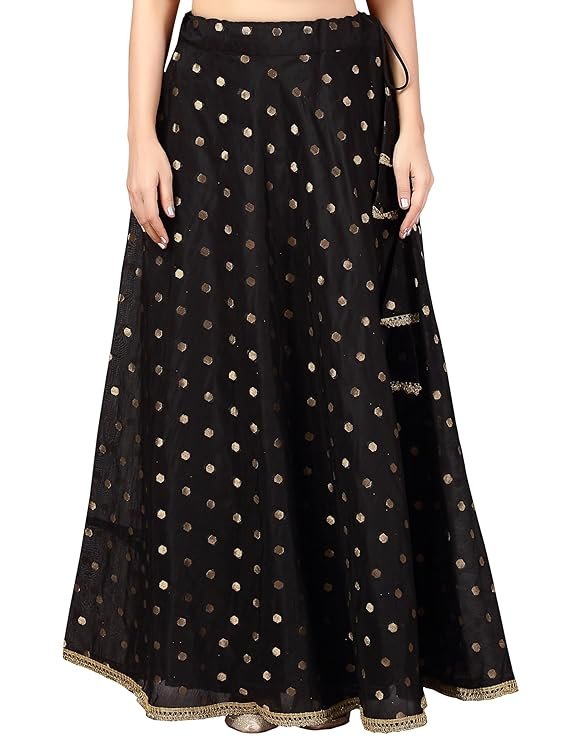 Studio Shringaar Women’s Polyester Readymade Chanderi Silk Long Skirt Lahenga