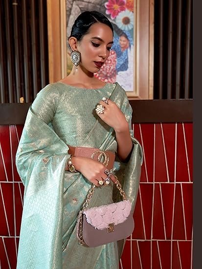 SWORNOF Women’s kanjivaram banarasi silk saree Zari Woven for festival Wedding silk with rich pallu Design sarees