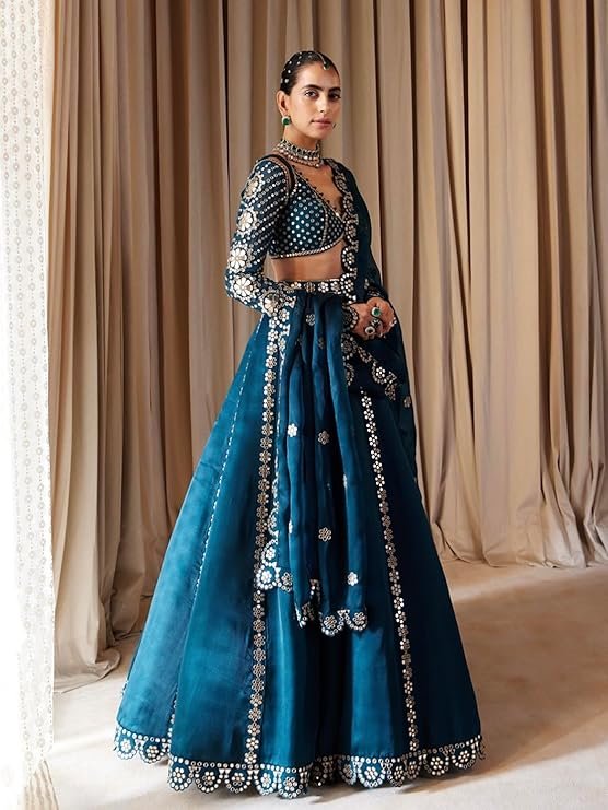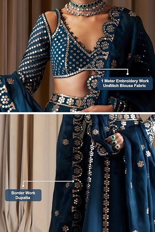 - Color: Lehenga,Choli Blouse,Dupatta: Teal Blue