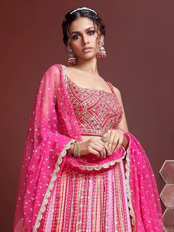 Zeel Clothing Women’s Silk Embroidered Semi-Stitched Wedding Lehenga Choli with Dupatta Free Size
