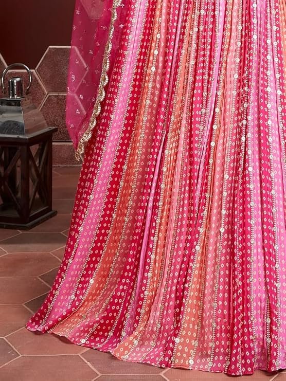 - Measurements: Lehenga(Semi-Stitched) Flair : 3.50mtr, waist-43″, height-43″; Blouse(Unstitched) Size: up to 44″; Dupatta Length: 2.25 mtr