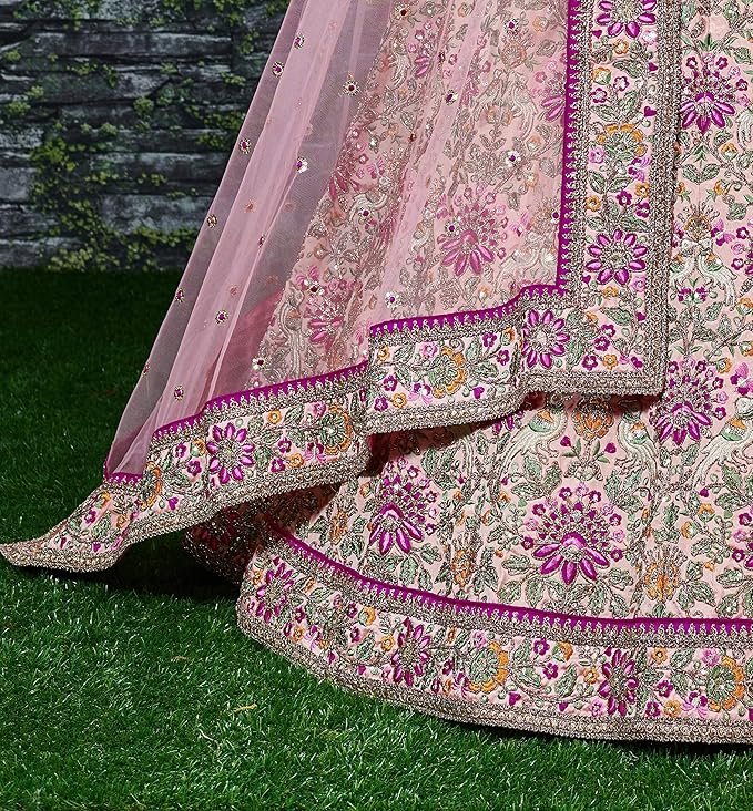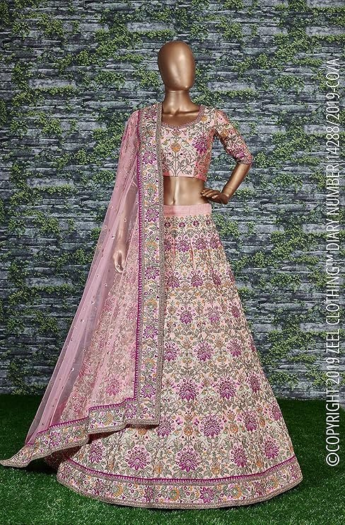 Zeel Clothing Women’s Silk Semi stitched Lehenga Choli (7035-Wedding-Bridal-Latest-Lehenga-Choli_Peach_Free Size)